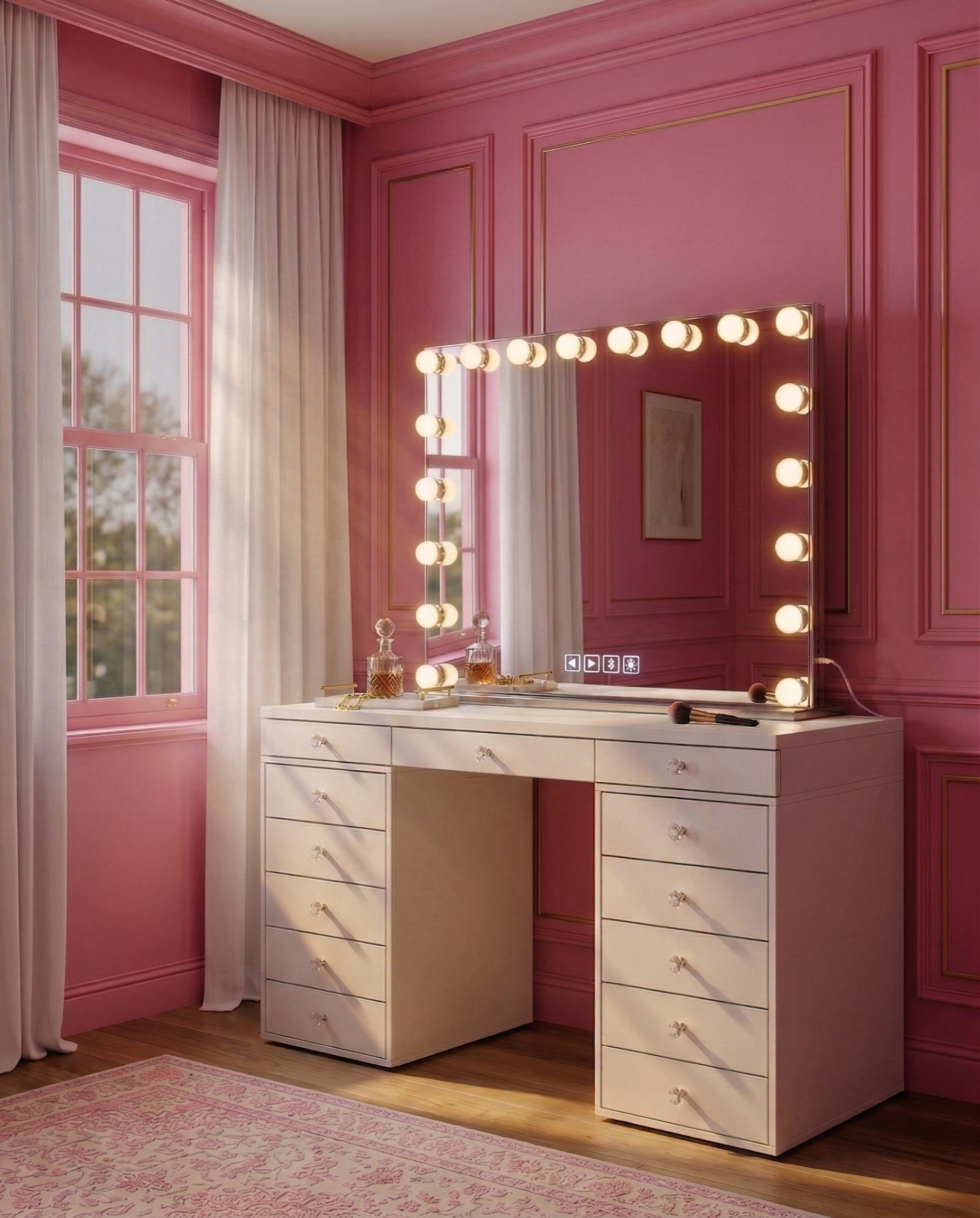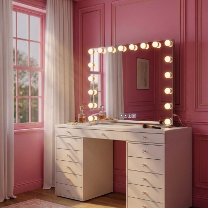 Lumina Hollywood Vanity ( without Glass Tabletop) – Elegant & Functional Beauty Organizer