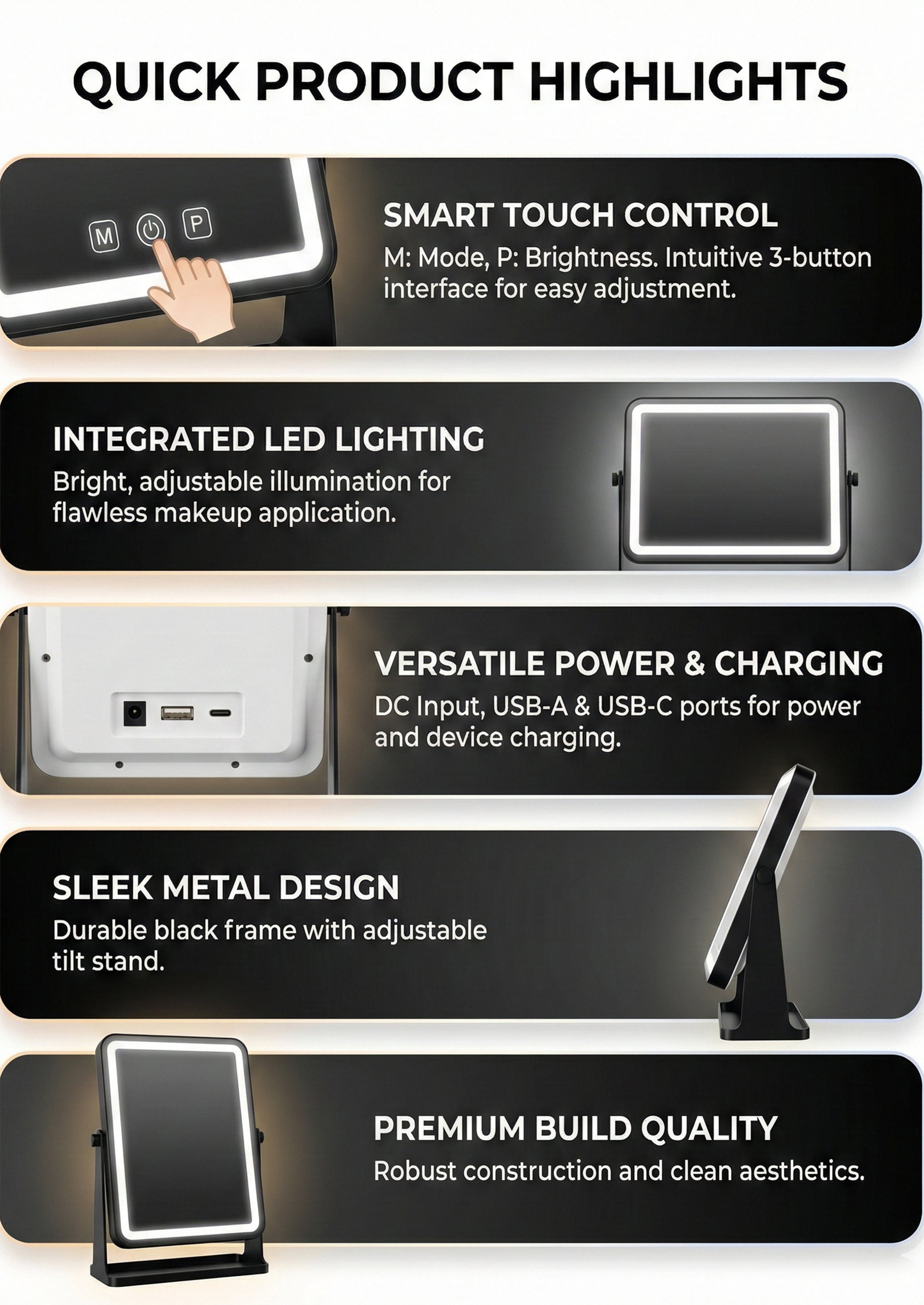 See-through Vanity Table features a clear glass top and three pull-out drawers that simply look stunning + 4 Drawers on both sides of the table with Push-to-Open Drawer Mechanism . Perfect table to display all of your makeup and accessories right where you want them!